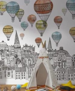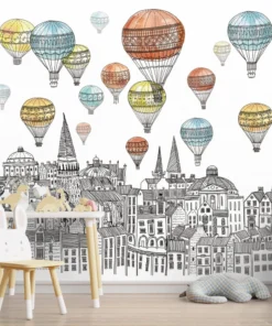 Bring whimsical charm to your home with our flying balloon cityscape wall mural. This captivating design features colorful balloons soaring above a vibrant urban landscape, inviting you to experience an enchanting journey every day. Perfect for living rooms, children’s rooms, or creative spaces, this mural adds a touch of adventure to any wall.
