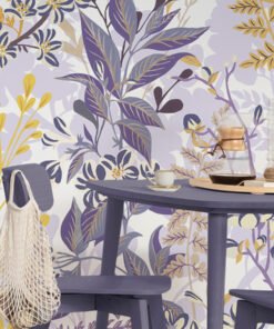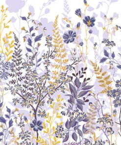 Bring nature indoors with this wildflower wallpaper mural, featuring a delicate hand-painted floral design in soft lilac, gold, and deep blue tones. Ideal for creating a whimsical, vintage-inspired space in living rooms, bedrooms, or cafes.