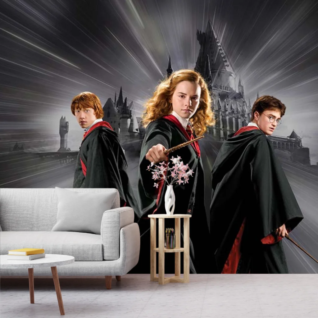 One of the most popular choices among fans is The Golden Trio Wall Mural. Featuring Harry, Hermione, and Ron together, this mural celebrates loyalty, bravery, and friendship — making it ideal for feature walls and fan spaces.
